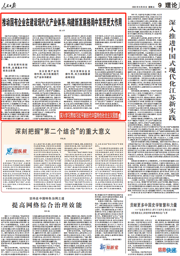 9月20日,《人民日?qǐng)?bào)》理論版刊發(fā)國(guó)務(wù)院國(guó)資委黨委書(shū)記、主任張玉卓署名文章《推動(dòng)國(guó)有企業(yè)在建設(shè)現(xiàn)代化產(chǎn)業(yè)體系、構(gòu)建新發(fā)展格局中發(fā)揮更大作用》,全文分享如下――