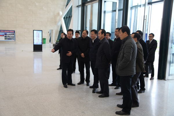 圖為市委書(shū)記張愛(ài)國(guó)(右三)調(diào)研國(guó)際會(huì)展中心千人會(huì)議室
