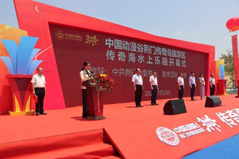 市委副書記、市長(zhǎng)李濤宣布荊門傳奇海水上樂園開園。中國(guó)動(dòng)漫集團(tuán)有限公司副總經(jīng)理孫浩、副市長(zhǎng)唐承鳳出席并共同為“中國(guó)動(dòng)漫谷荊門傳奇島旅游區(qū)”揭牌。市委常委、市委宣傳部部長(zhǎng)徐莉出席活動(dòng)并致辭。市政府秘書長(zhǎng)羅少華參加活動(dòng)。漳河新區(qū)黨工委書記陶然主持開幕式。市城控集團(tuán)領(lǐng)導(dǎo)班子成員,城建集團(tuán)相關(guān)負(fù)責(zé)人等參加開幕式。