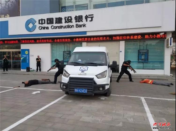 在新中國成立70周年到來之際,為進(jìn)一步提高押運人員的安全防范意識和應(yīng)對突發(fā)事件的快速處置能力,營造平安祥和的金融環(huán)境,更好地保護(hù)銀行單位人員、資金安全,全力“保大慶保軍運”, 9月26日,沙洋縣公安局內(nèi)保大隊指導(dǎo)荊門市金盾保安服務(wù)有限公司沙洋押運分公司、中國建設(shè)銀行沙洋支行在建行沙洋開發(fā)區(qū)支行門口聯(lián)合開展了一場應(yīng)急反搶實戰(zhàn)演練。相關(guān)部門分管安保領(lǐng)導(dǎo)到場觀摩了演練。